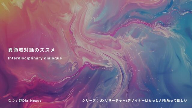異領域対話のススメ / Interdisciplinary dialogue | UXリサーチャー/デザイナーはもっとAIを触って欲しいシリーズ Algomatic主催イベント、生成AIバー ろまんてぃっく 〜人形町より愛を込めて〜 のLT内容です。 UXリサーチャー/デザイナーはぜひAIを触っていきましょう!