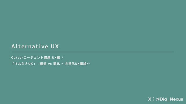 Cursorエージェント講座 UX編 / 「オルタナUX」:爆速 vs 深化 〜次世代UX議論〜 https://explaza.connpass.com/event/358495/ 深化担当のなつです。