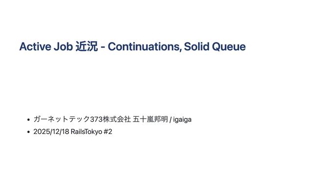 Active Job 近況 - Continuations, Solid Queue ガーネットテック373株式会社 五十嵐邦明 /