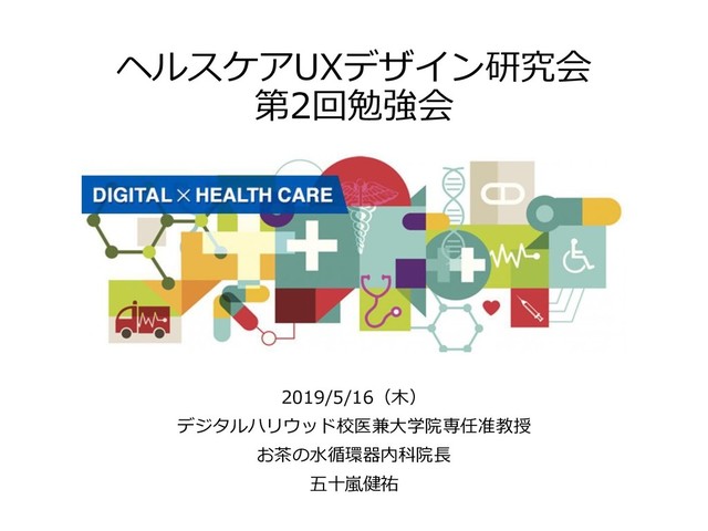 ヘルスケアUXデザイン研究会 第2回勉強会 2019/5/16(木) デジタルハリウッド校医兼大学院専任准教授 お茶の水循環器内科院長 五十嵐健祐