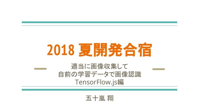 2018 夏開発合宿 適当に画像収集して 自前の学習データで画像認識 TensorFlow.js編 五十嵐 翔