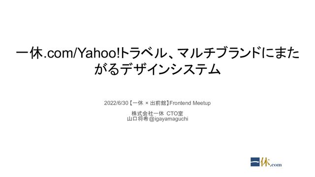 一休.com/Yahoo!トラベル、マルチブランドにまた がるデザインシステム 2022/6/30 【一休 × 出前館】Frontend Meetup 株式会社一休 CTO室 山口将希@igayamaguchi