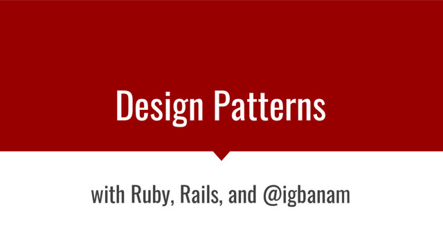 problems which occur frequently in the industry. In software alone, these are bugs, flaws, and so on. Design Patterns are not exclusive to software. They exist in every industry. But for the purposes of this talk, we will be focusing on software design patterns as seen in Ruby and Rails.