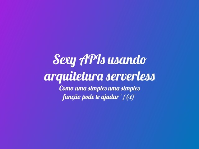 Sexy APIs usando arquitetura serverless Como uma simples uma simples