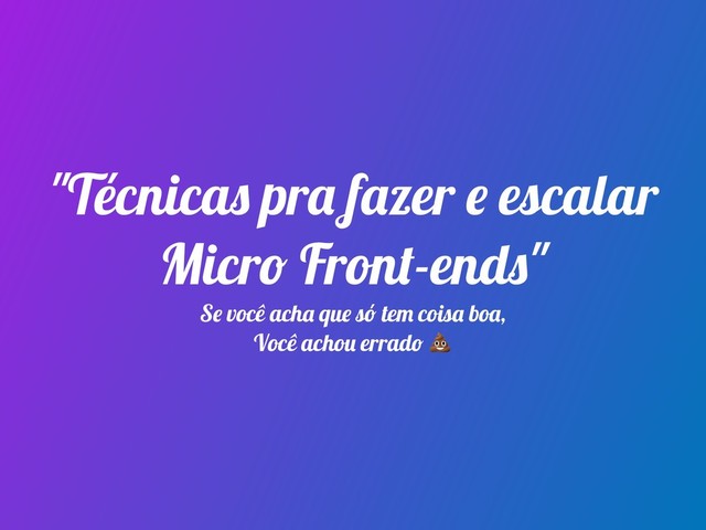 "Técnicas pra fazer e escalar Micro Front-ends" Se você acha
