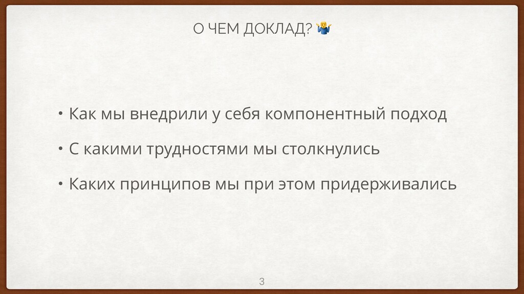 В своем докладе я бы хотел рассказать о том, как наша компания внедрила у себя этот подход, с какими трудностями мы при этом столкнулись и каких принципов мы придерживались.