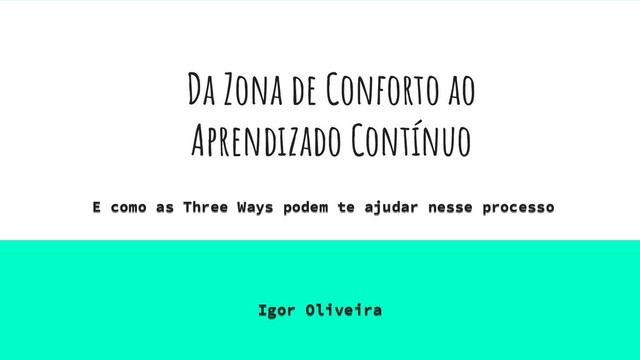 Palestra ministrada no DevOpsDays Porto Alegre 2019. A palestra trata de como sair da zona de conforto a uma prática de aprendizado contínuo, e como as three ways do DevOps tem dicas que podem te ajudar a se organizar nos estudos.
