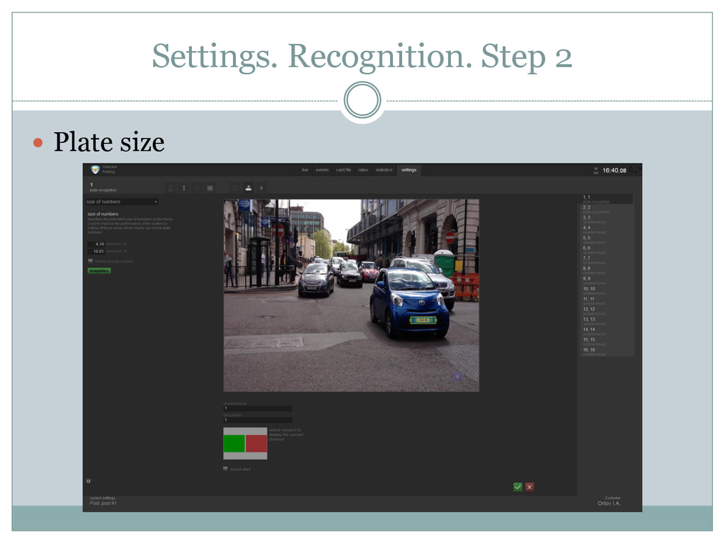 and exit ACMS Automatic gate opening Card file with unlimited groups Traffic Recognition on up to 180 km/h speed ANPR time ≤2 milliseconds Card file with possibility of “Wanted” groups In future possible to integrate with radar systems