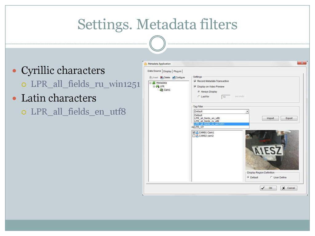 Plates ≥96%* Up to 10 license plates on one frame Up to 16 recognition channels on one server Display both Live View and Video Archive from NUUO Creating reports, export of settings Sending events to NUUO Mainconsole * According to “Interpolytech” exhibition’s contest PRO System CCTV №04 [28] July-August 2007