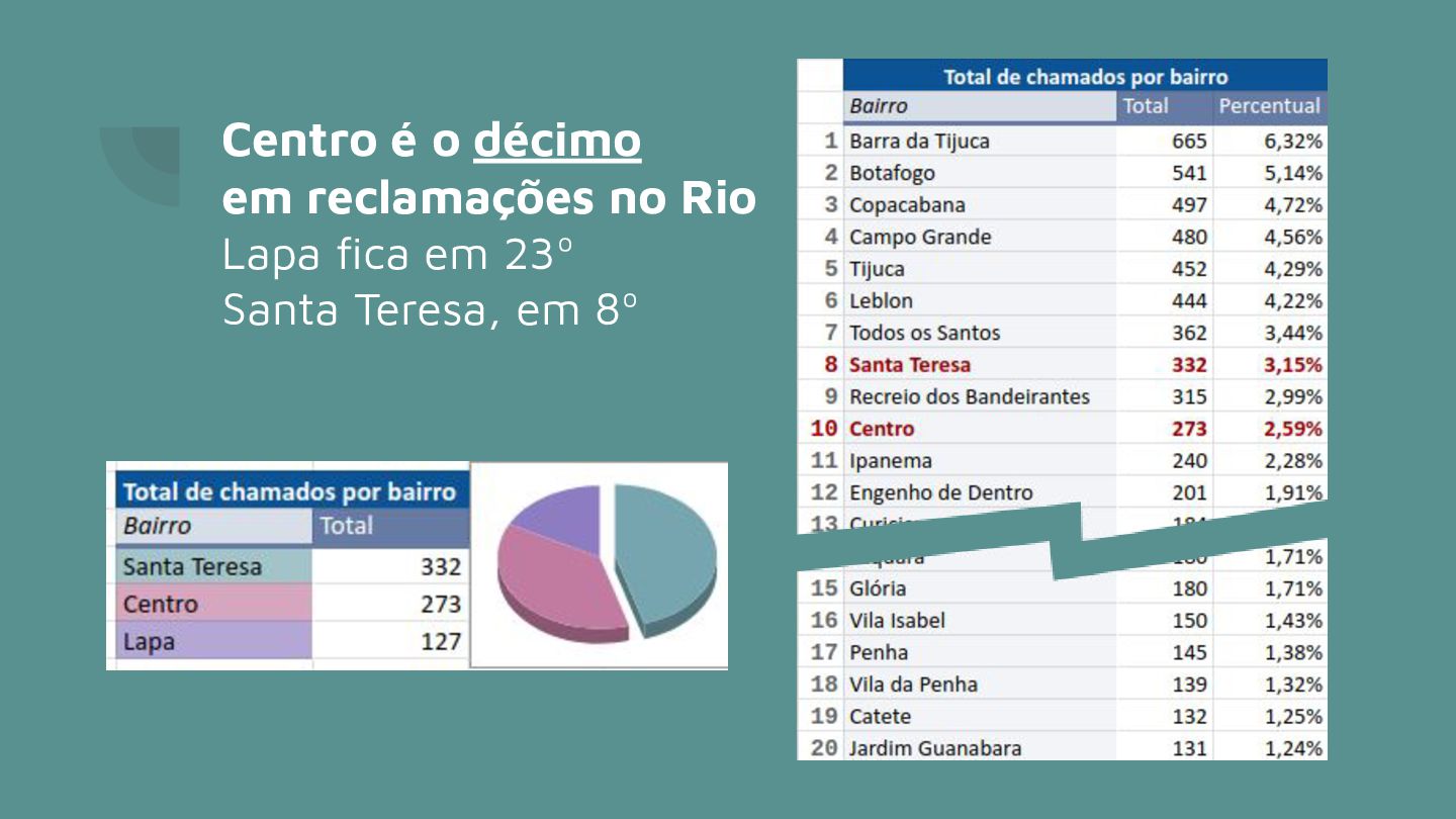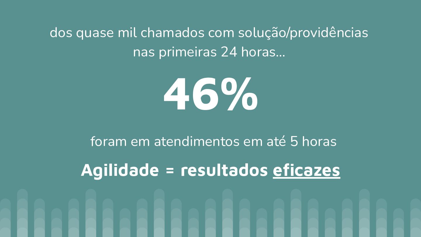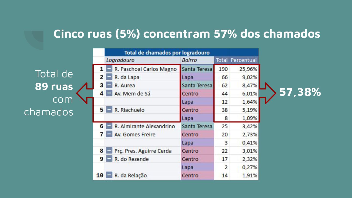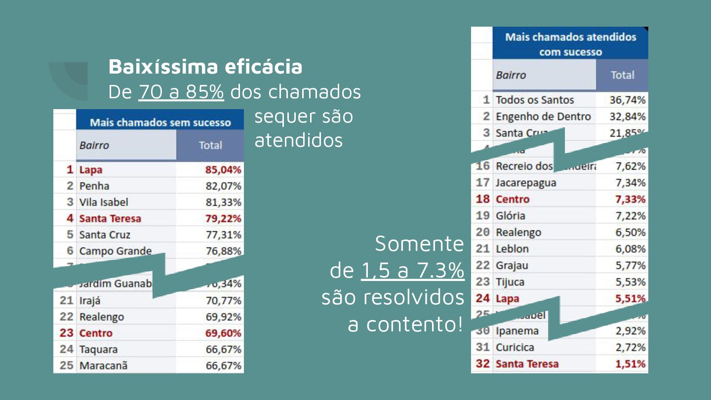 horas… Agilidade = resultados eficazes foram em atendimentos em até 5 horas No Centro/Lapa/Santa Teresa somente 32 chamados* foram fechados com solução 12% disso, em menos de 5 horas * de um total de 593 chamados na região