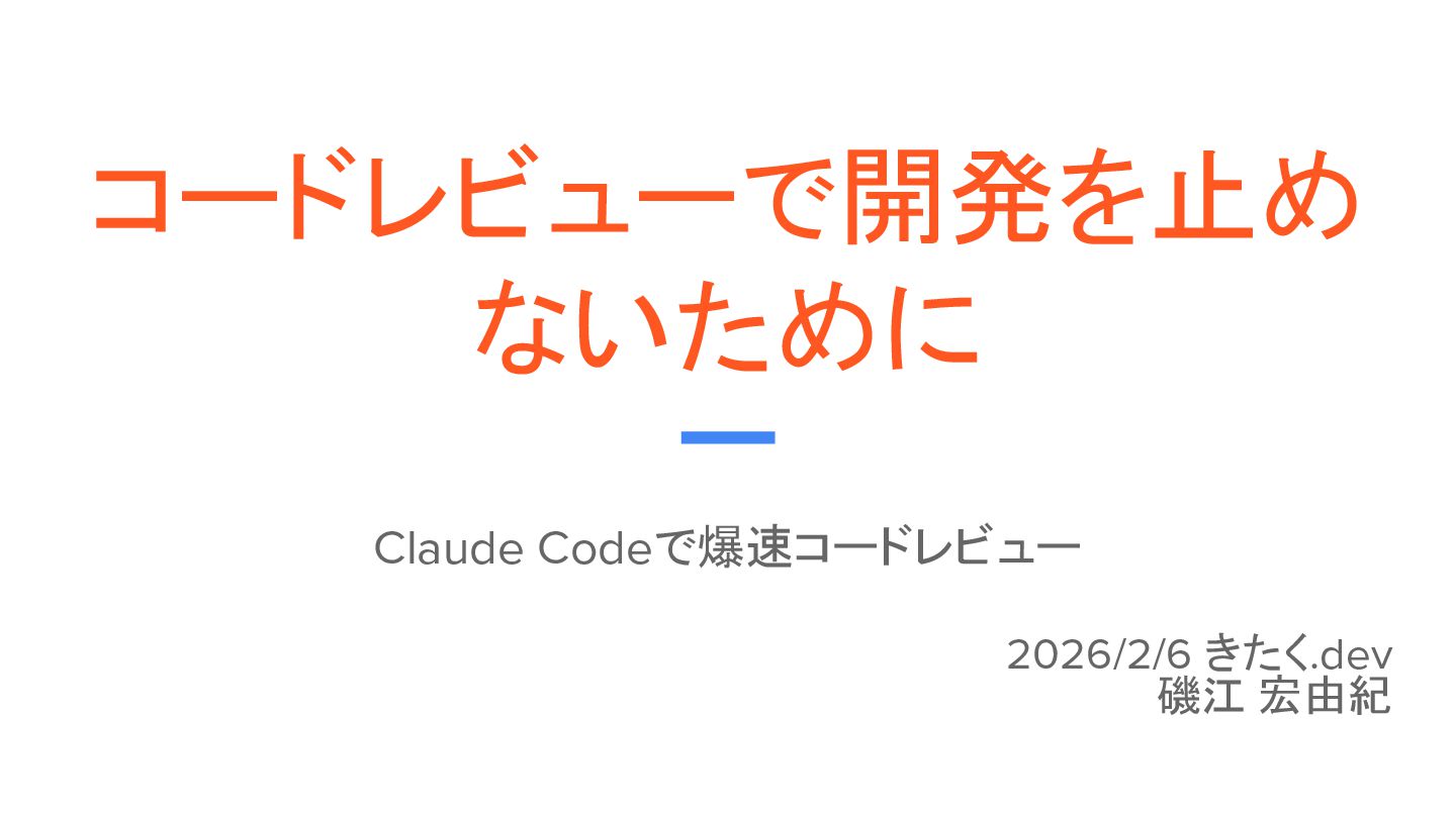 コードレビューで開発を止め ないために Claude Codeで爆速コードレビュー 2026/2/6 きたく.dev 磯江 宏由紀