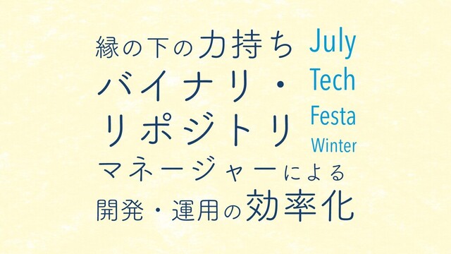 ԑͷԼͷྗ࣋ͪ όΠφϦɾ ϦϙδτϦ ϚωʔδϟʔʹΑΔ ։ൃɾӡ༻ͷޮԽ July Tech Festa Winter