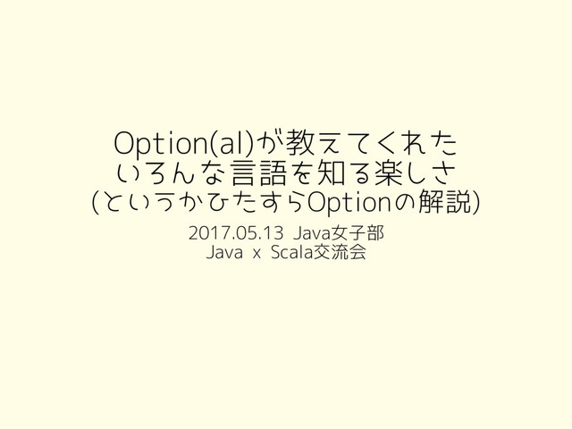 Option(al)が教えてくれたいろんな言語を知る楽しさ(というかひたすらOptionの解説)