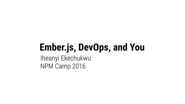 Ember.js, DevOps, and You - NPM Camp 2016