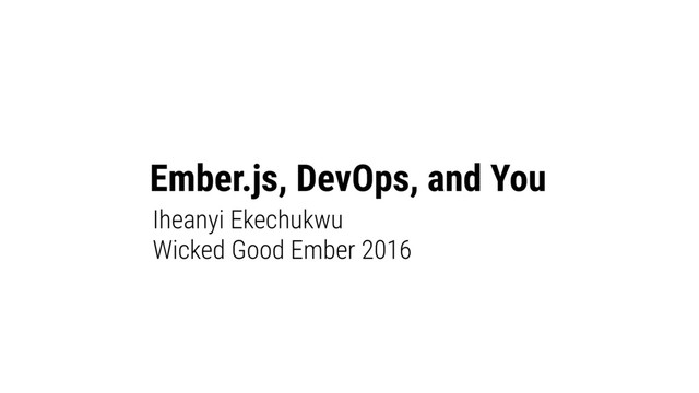 Ember.js, DevOps, and You - Wicked Good Ember 2016