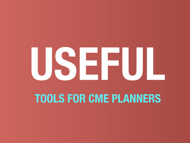 the planning, marketing or delivery of CME activities DETERMINE IF EACH TOOL WOULD BE USEFUL for their specific CME program SUMMARIZE THE PROS AND CONS of each presented tool TODAY’S LEARNING OBJECTIVES