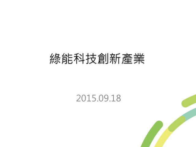 ▪ 為什麼要扶植綠能產業與科技 ▪ 台灣綠能產業發展現狀 ▪ 未來綠能產業發展方向 ▪ 綠能科技創新產業生態系 (創新綠能科技園區: 沙崙)