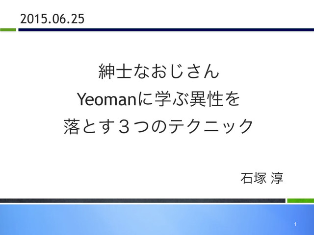 1 2015.06.25 ਈ࢜ͳ͓͡͞Μ YeomanʹֶͿҟੑΛ མͱ̏ͭ͢ͷςΫχοΫ ! ੴ௩ ३