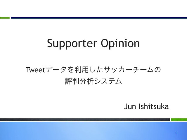 1 Supporter Opinion ! TweetσʔλΛར༻ͨ͠αοΧʔνʔϜͷ ධੳγεςϜ ! Jun Ishitsuka