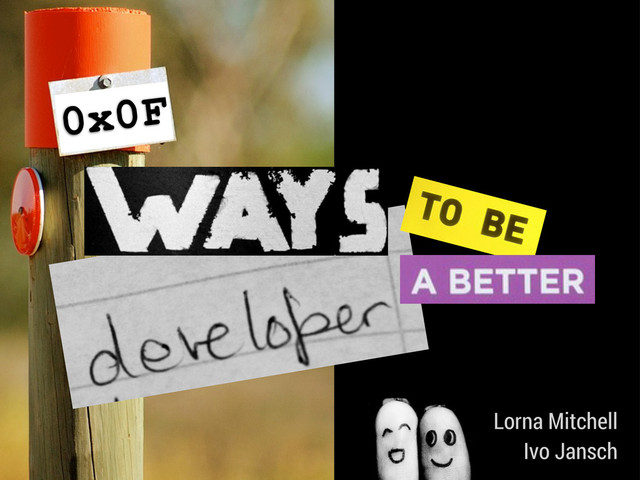 this talk: http://joind.in/9291 Get the book: http://nwaysbook.com The full credits for the pictures in this presentation can be found in the slide deck online.