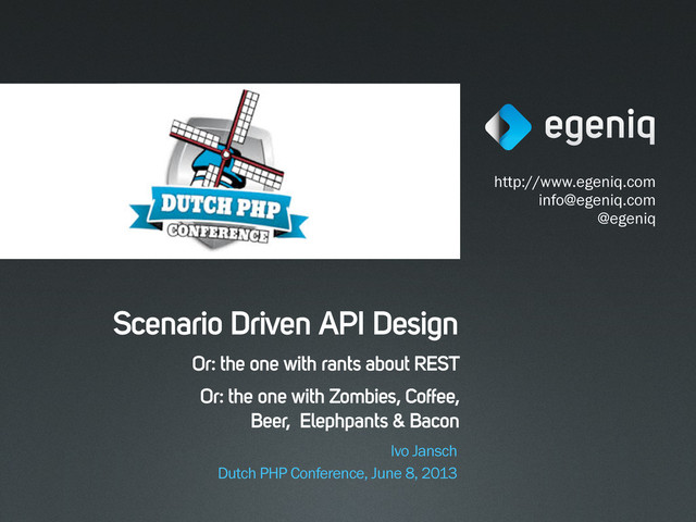 We work a lot with APIs and often encounter very badly designed APIs. Claiming that it's RESTful, such APIs often directly expose an underlying data model and skip the design part. This is not a REST problem, but a problem of not understanding REST. In this talk, I presented an approach to get to APIs that are more usable and that have a better design. Presented at the Dutch PHP Conference 2013.