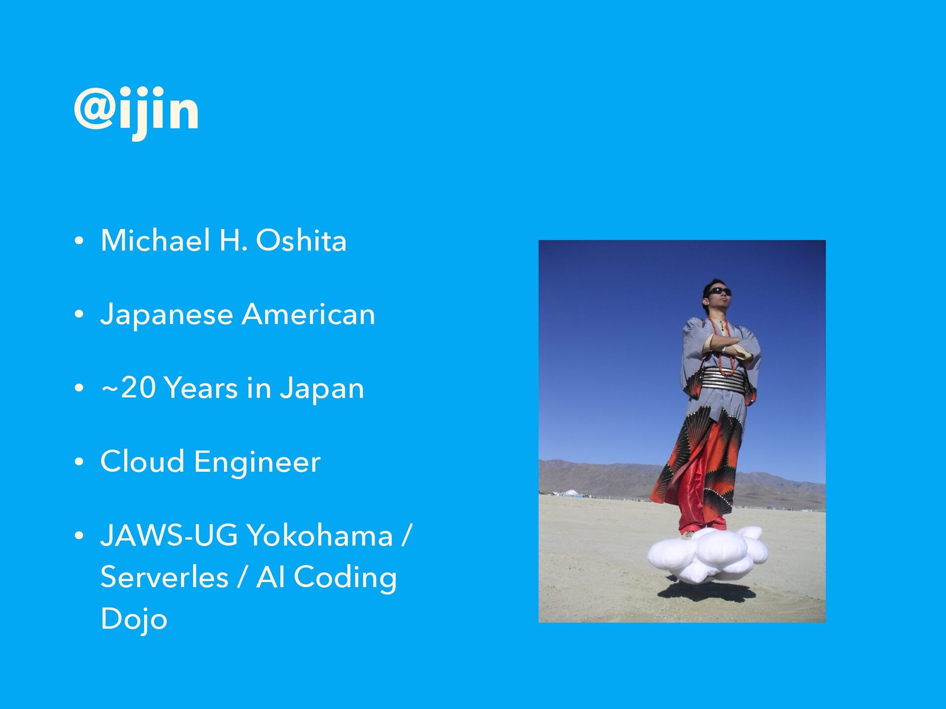 Years in Japan • Cloud Engineer • JAWS-UG Yokohama / Serverles / AI Coding Dojo