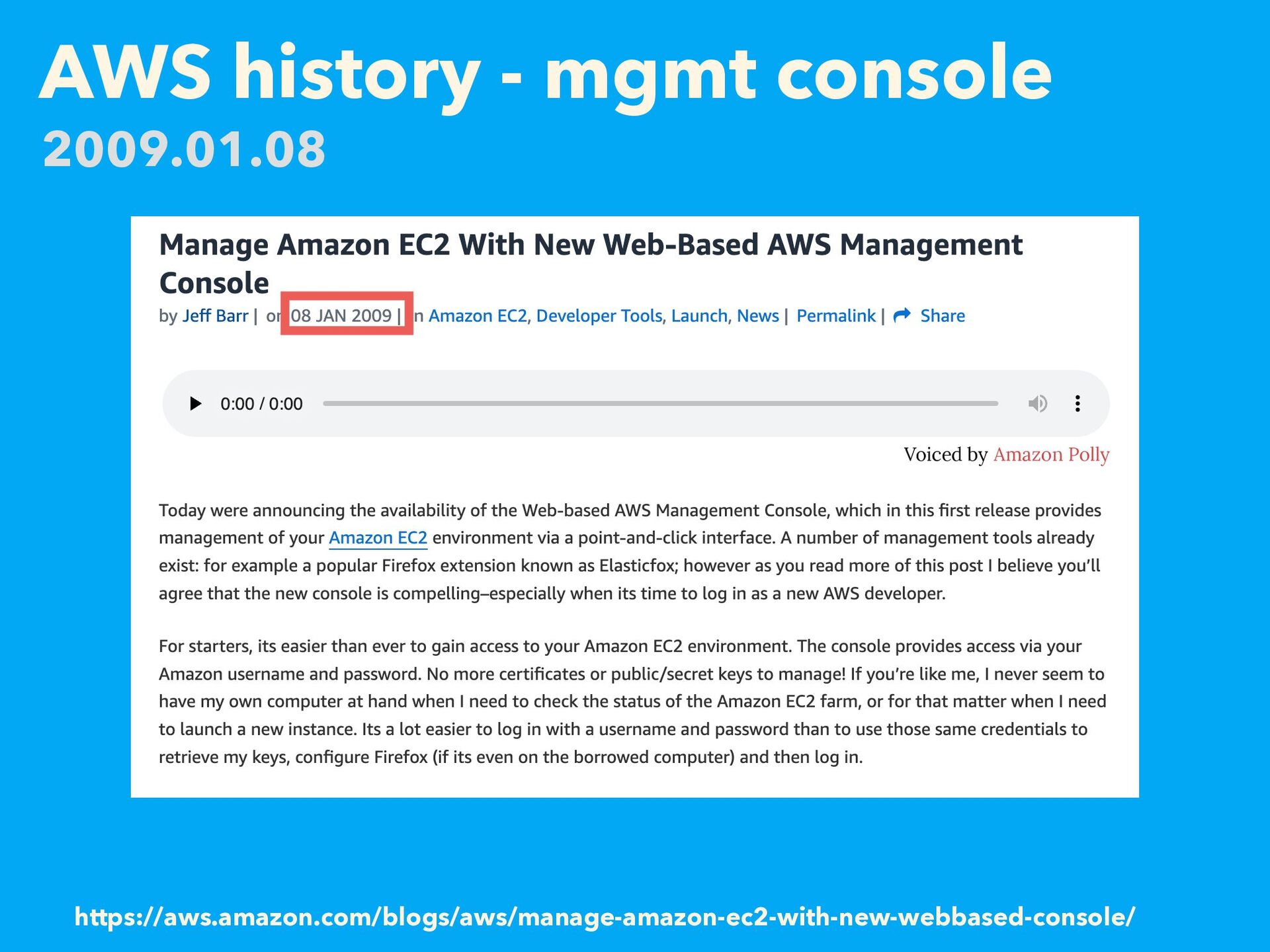 AWS history - mgmt console https://aws.amazon.com/blogs/aws/manage-amazon-ec2-with-new-webbased-console/ 2009.01.08