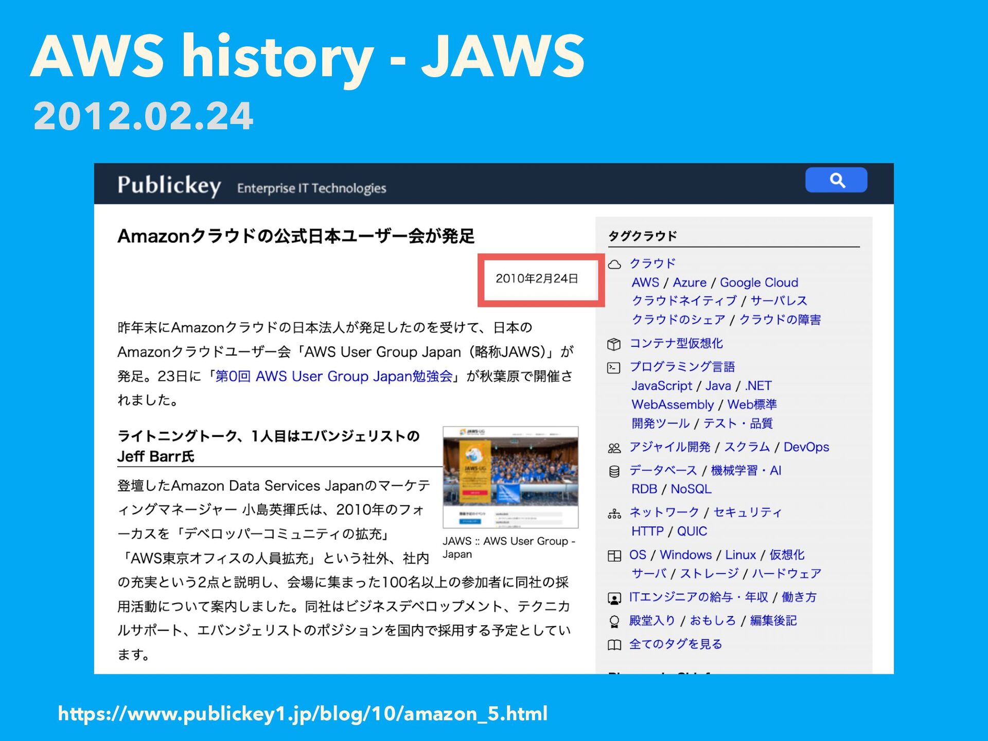 AWS history - JAWS https://www.publickey1.jp/blog/10/amazon_5.html 2012.02.24