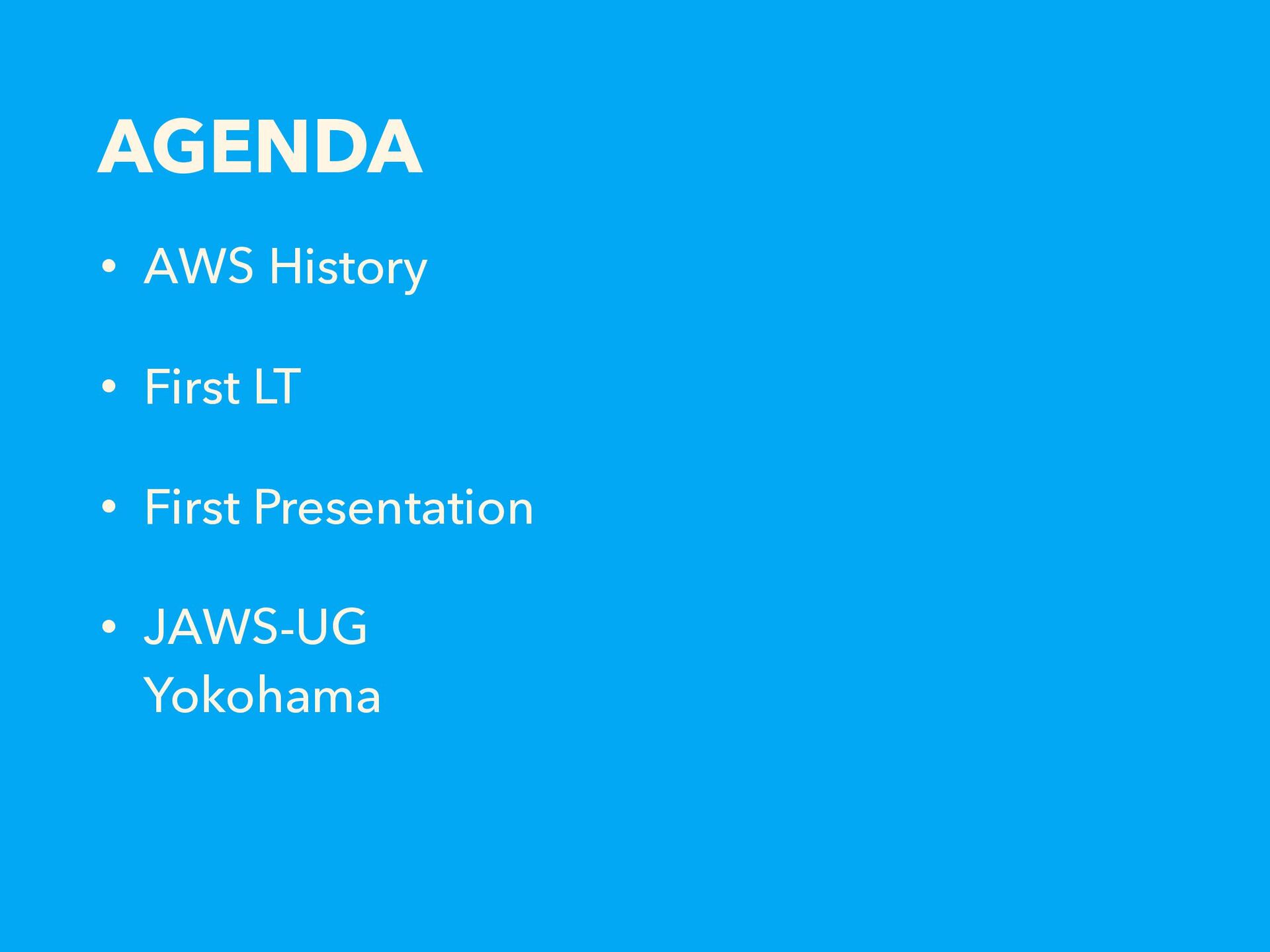 AGENDA • AWS History • First LT • First Presentation