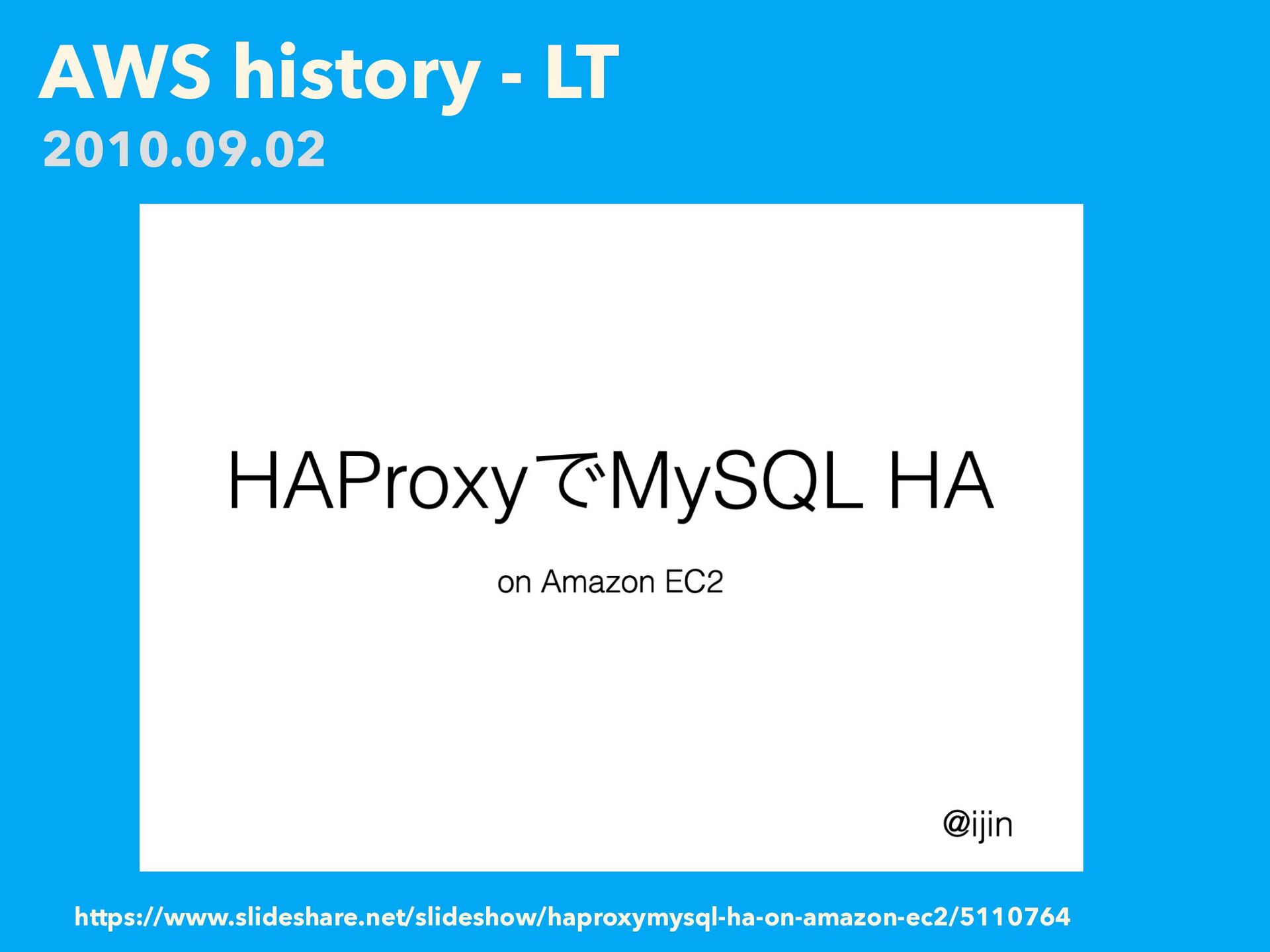 AWS history - LT https://www.slideshare.net/slideshow/haproxymysql-ha-on-amazon-ec2/5110764 2010.09.02