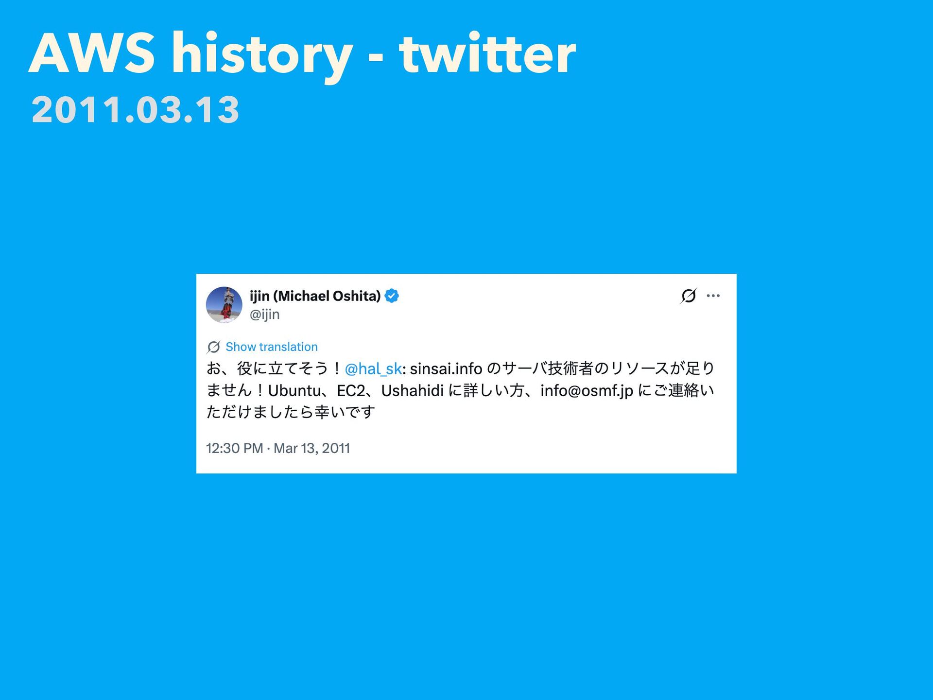 AWS history - twitter 2011.03.13