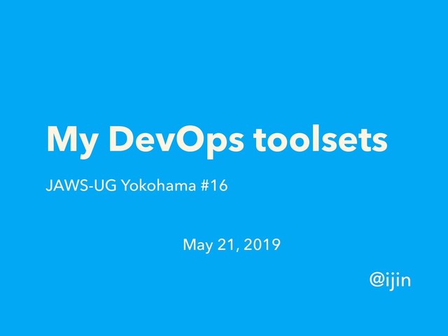My DevOps toolsets @ijin May 21, 2019 JAWS-UG Yokohama #16