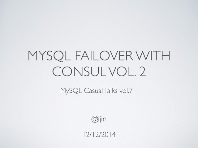 MYSQL FAILOVER WITH CONSUL VOL. 2 12/12/2014 @ijin MySQL Casual