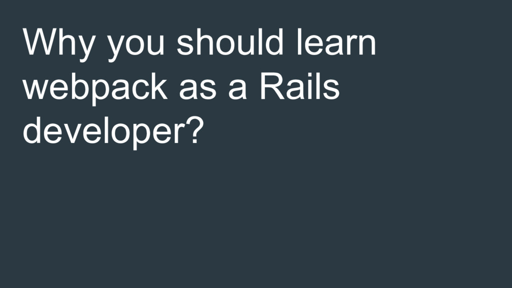 Ecosystem You can try it now in a Rails 4.2+ app by including the ‘webpacker’ gem in your gemfile, running bundle install and then the follow. “rake webpacker:install”
