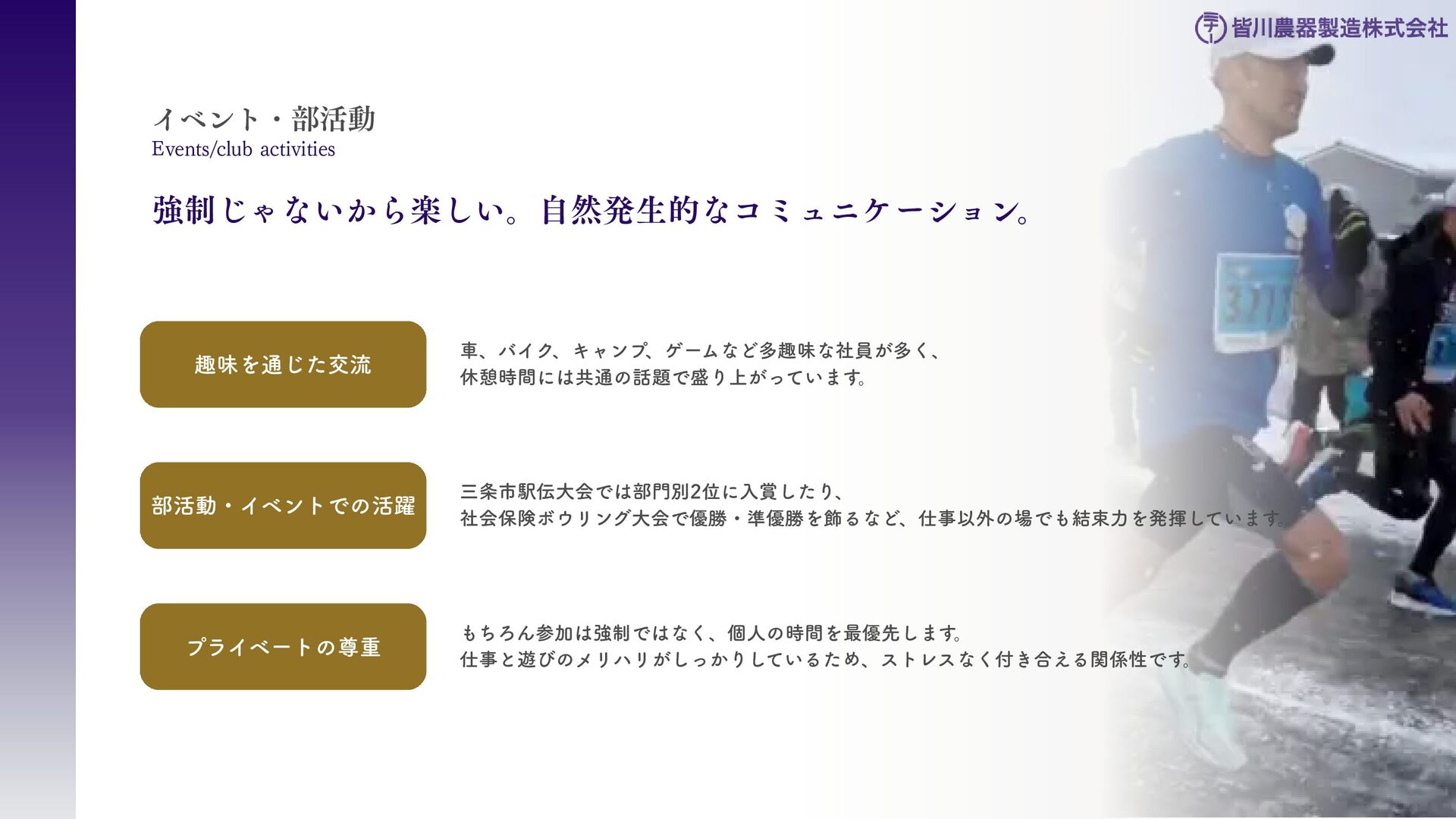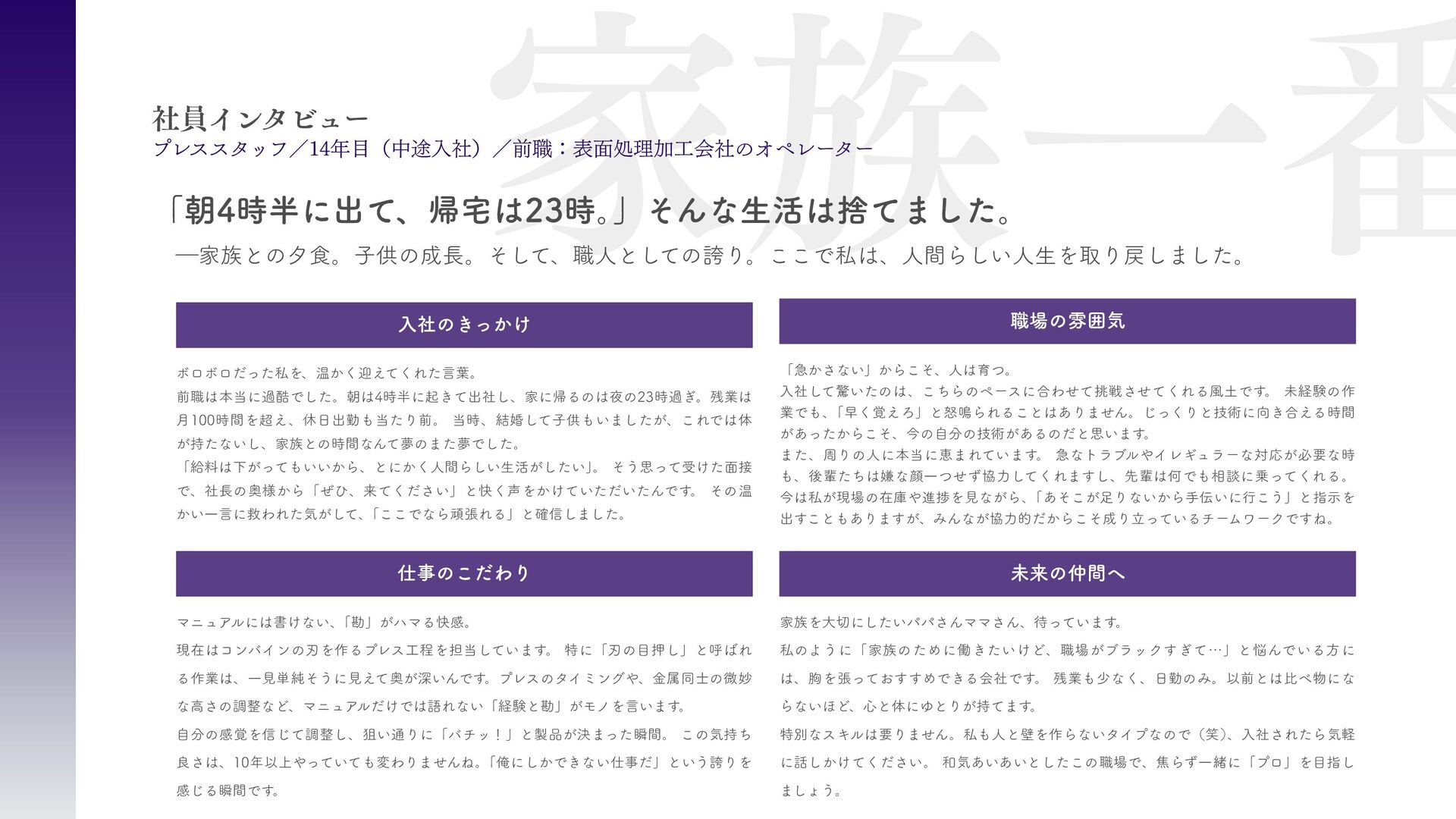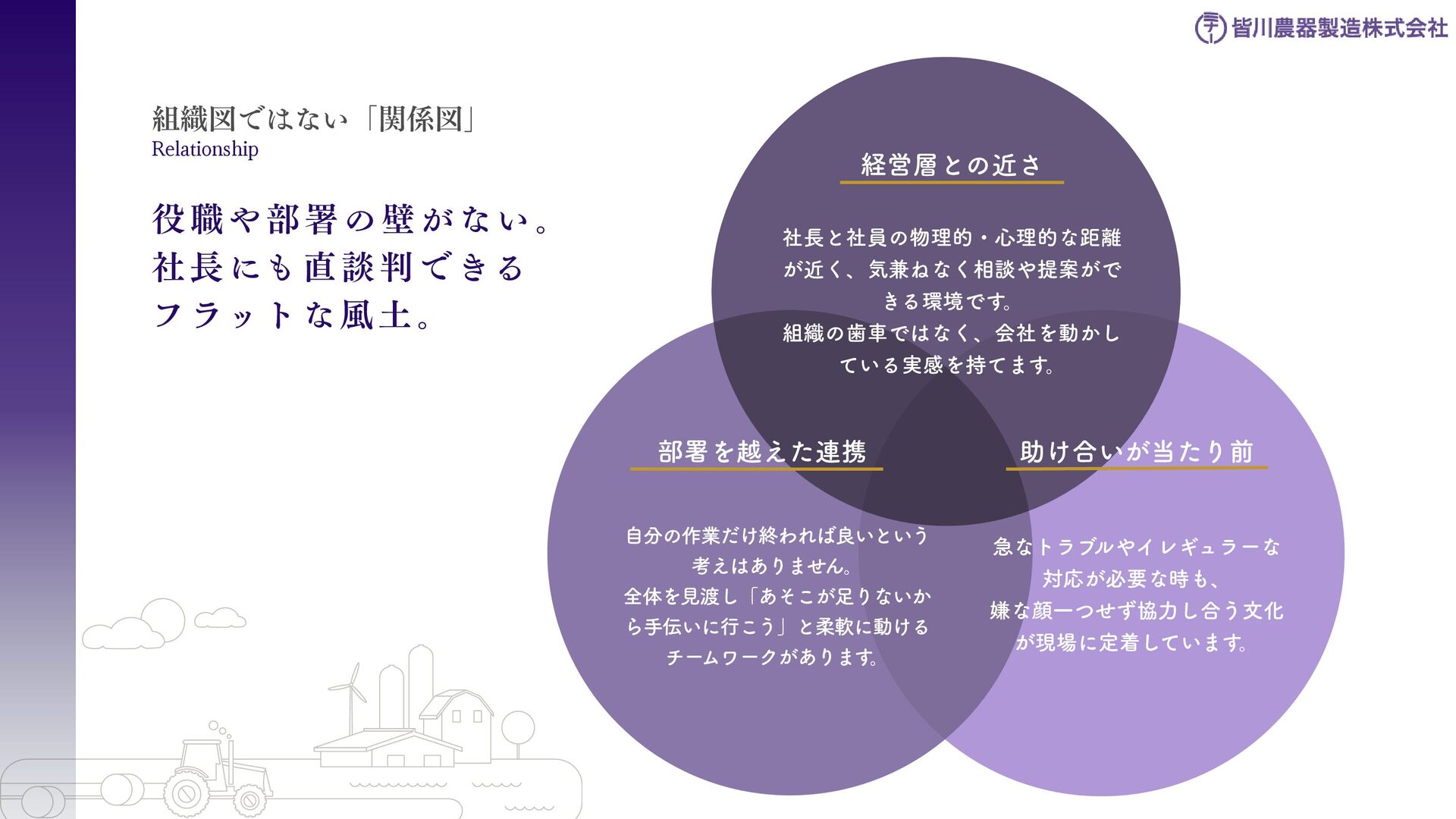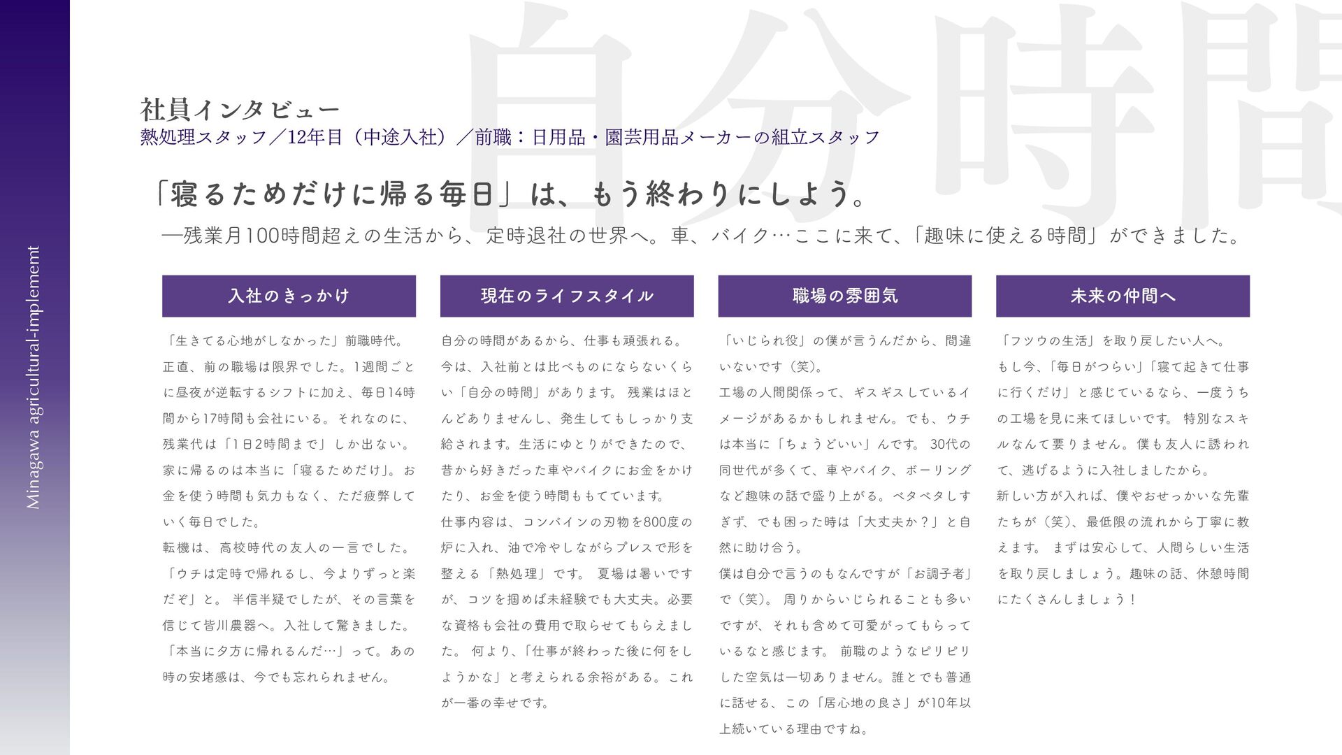 刈払機用は、鋼板の物 と、鋼板の先端に超硬チ ップを付けたチップソー があります 。バーナイフ、 ハンマーナイフは、専用 機械に取り付けて使いま す 。 草刈用 当社の刃物はヨーロッパのベルサイユ宮殿の庭管理にも使われています。 草刈から産業用までさまざまなシーンで使われる刃物の製造・販売をしています。 シーンによりニーズは異なり、切れ味が良ければそれでいいというわけではなかったり奥深い世界です。 稲作用 米や小麦の収穫用コンバ イン・バインダーに使用 される刃物です。コンバ インやバインダーの先端 に取り付けて稲の刈取を する刈取刃。 コンバインの中に組入れ て脱穀するワラ切刃、稲 わらを裁断するストロー カッター。野菜等のカッ ターとしても使用されて います 。 畑作用 田畑の土を耕起する、野 菜を収穫する、根や葉を 切断するために使用され る刃物です 。 円盤状になっていて田畑 の土を起こす機能のディ スク・コルター。 トウモロコシ、ジャガイ モ、ビート、牧草等の野 菜を収穫する時に使用さ れるカッター、ナイフ。 園芸・芝刈用 生け垣などの剪定や公 園・ゴルフ場等の芝草を 管理する刃物です。生け 垣の剪定、刈込みに使用 されるヘッジトリマー 刃。公共の場はもちろ ん、家庭の樹木の剪定に も最適な刃物です 。 ゴルフ場や公園で主に使 われる芝刈機用の回転 刃、固定刃。 産業用 用紙を切断する刃物や、 林業用機械、建設現場の 機械で使用される刃物で す 。 名刺やレシート、普通紙 等の紙を切断する刃物。 木材を粉砕する刃物、コ ンクリートや地面をきれ いにする刃物。 その他にもあります。ご 相談ください。 コンベア 収穫した作物の搬送や肥 料撒きで使用される搬送 コンベア部品。 ジャガイモ、タマネギ等 の野菜を収穫するときに 使用されるコンベア部 品。肥料を田畑に撒くと きに使用される搬送用コ ンベア部品。鍛造溶接 品、ロット丸棒仕様と多 種に対応可能です 。 特殊鋼 特殊鋼板の熱間加工、特 殊丸鋼の曲げ加工品で す 。 ひょうたん形状、ねじれ 形状、変形曲げなど必要 に応じた刃物・部品の形 状に対応が可能です 。 ご相談ください。