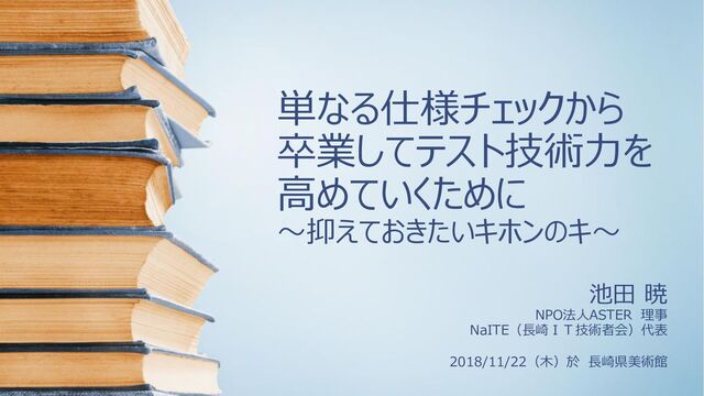 本セッションはテストに取り組み始めた方やテスト初級者向けに行います。テストといいつつ単なる仕様チェックになりがちな状態を卒業したい、テスト技術の全体像を掴みたい、テストの技術を高めるために勉強を始めたりスキルアップに取り組みたいと考えている方向けに、押さえておきたいキホンのキをお話しします。