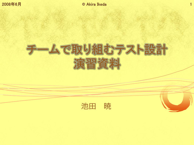 チームで取り組むテスト設計 演習資料 池田 暁 © Akira Ikeda 1 2008年6月