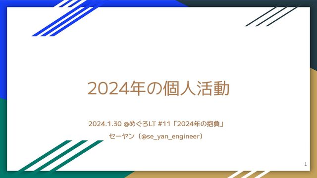 2024. 1. 30に開催された【めぐろLT #11「2024年の抱負」】にて登壇させていただいた資料です。