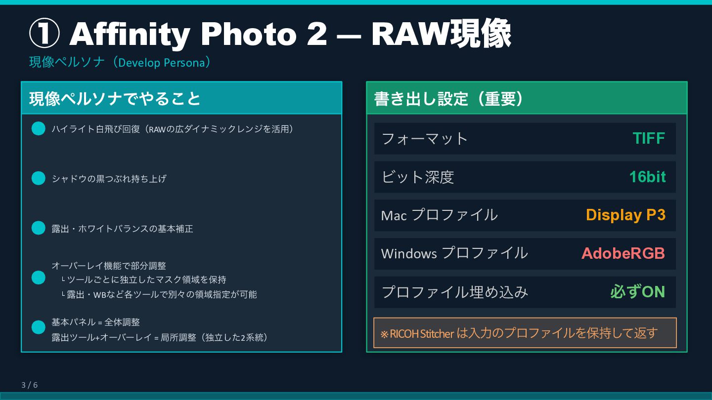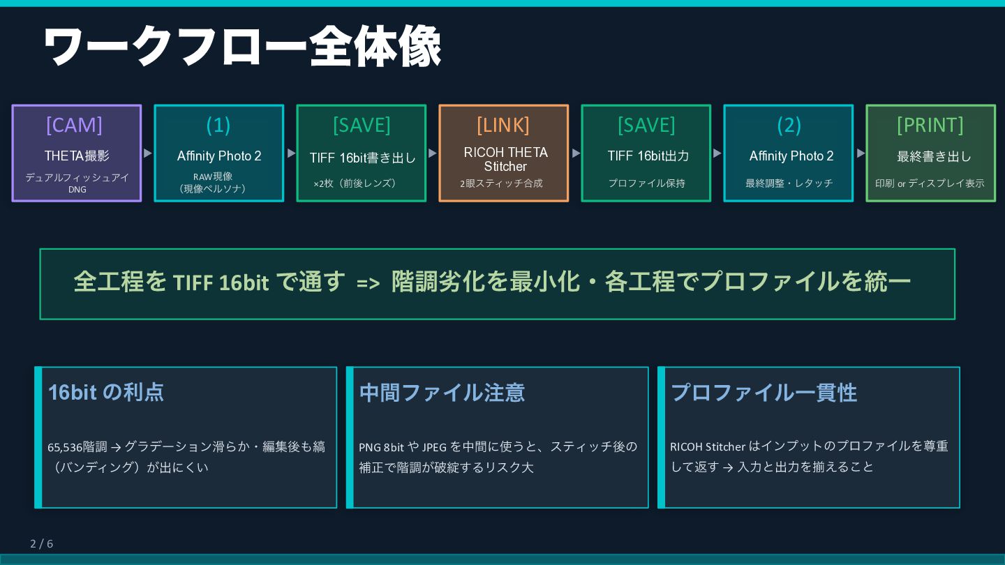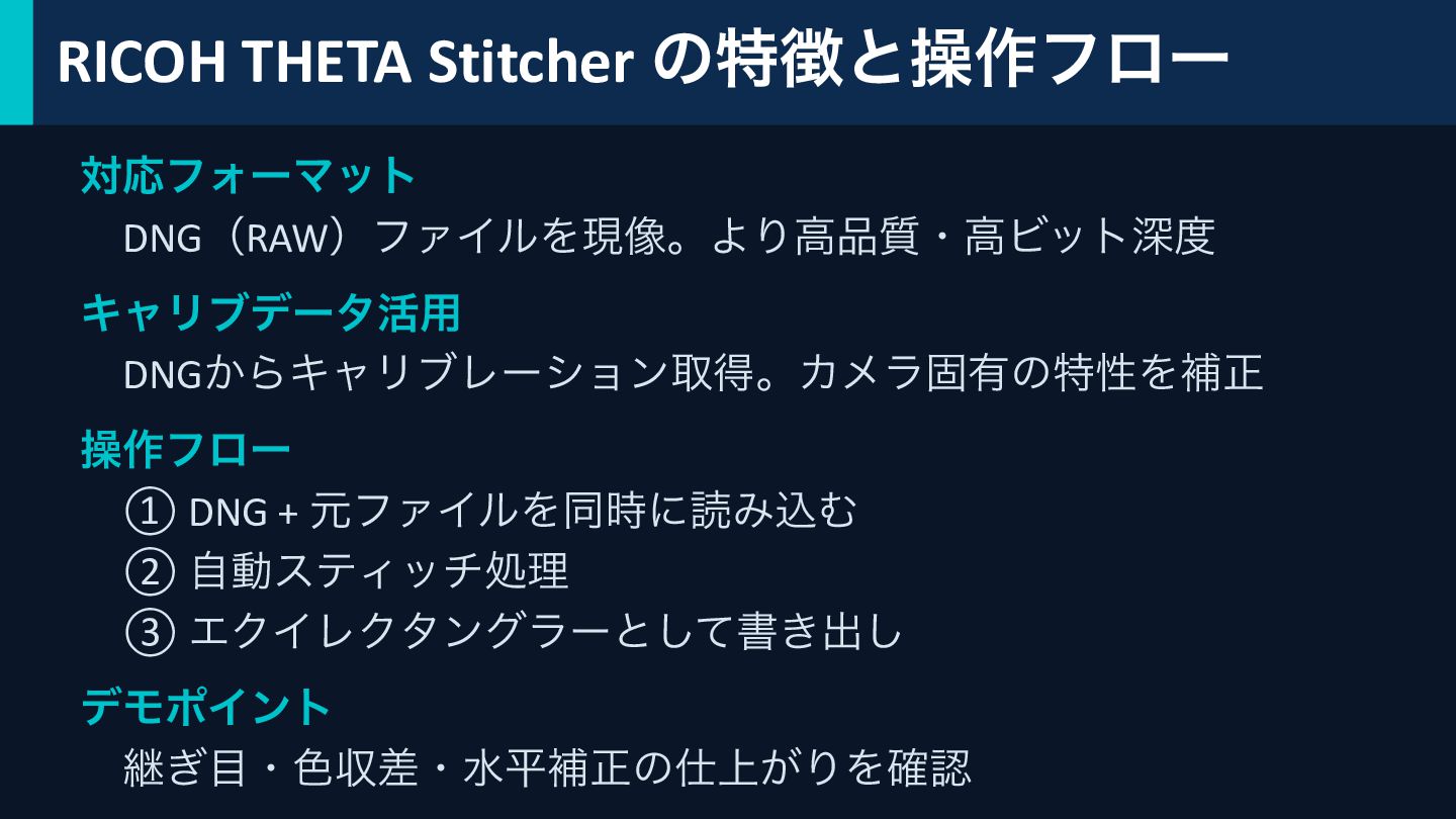 ただし、ダブルフィッシュアイ形式は、魚眼レンズ写真と同様ですので、そのままでは、パノラマ表示や、リトルプラネットに加工することはできません。このセミナーでは、このダブルフィッシュアイ形式とエクイレクタングラー形式の関係、変換について説明します。