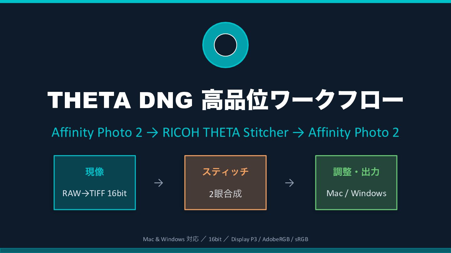 THETAシリーズは、360イメージの標準形式のエクイレクタングラーだけでなく、360カメラの両側の魚眼レンズで撮影したまま、スティッチ処理していないダブルフィッシュアイ形式もサポートしています。