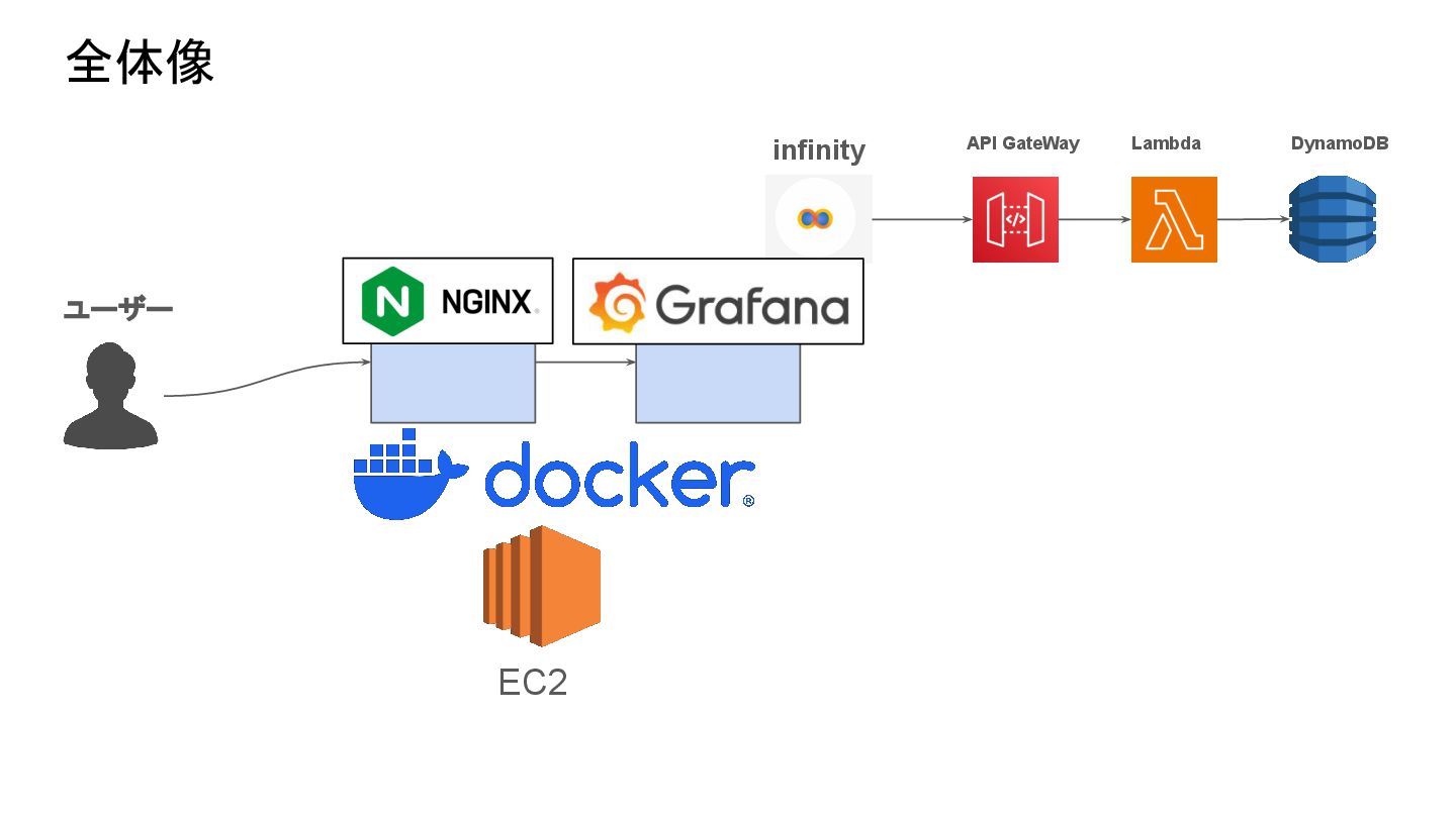 全体像 EC2 ユーザー API GateWay Lambda DynamoDB infinity