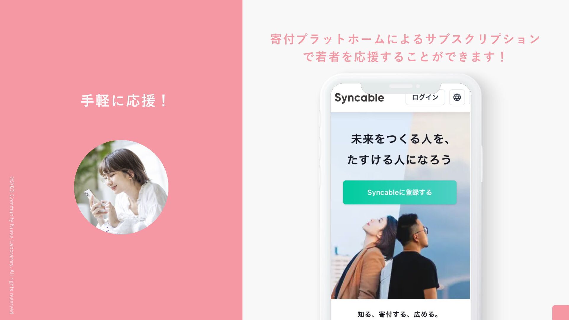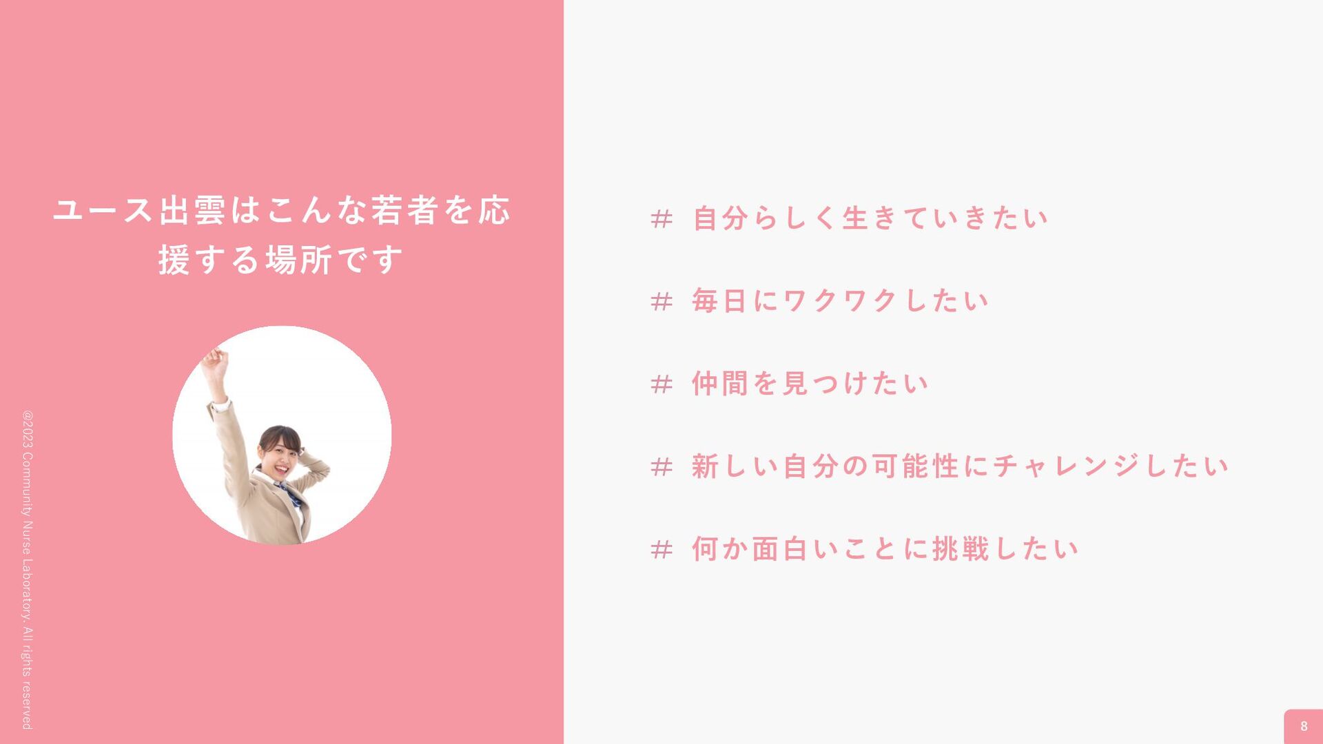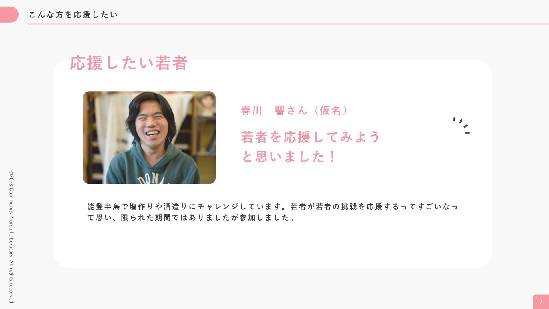 @2023 Community Nurse Laboratory. All rights reserved 若者のありのままの挑戦を ⼀緒に応援しませんか