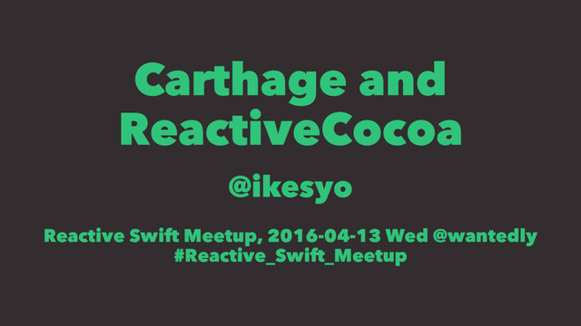 ReactiveCocoa 3.0 by jspahrsummers · Pull Request #966 · ReactiveCocoa/ ReactiveCocoa • jspahrsummers/RxSwift: Proof-of-concept for implementing Rx primitives in Swift • Release v3.0 · ReactiveCocoa/ReactiveCocoa • γϯϓϧͳύοέʔδ؅ཧπʔϧ Carthage - Realm is a mobile database: a replacement for SQLite & Core Data • RxͷHotͱColdʹ͍ͭͯ - Qiita • Reactivity • Delta/reactive-extensions.md at v0.1.0 · thoughtbot/Delta