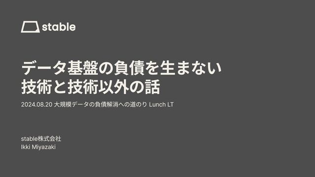 という特徴があ なので、バックエンドエンジニアや、SQLの書けるマーケターなどが、 (これ自体は素晴らしいことだが、) 「何となく出来てしまう」 本職の片手間でデータ基盤を運用しているケースも多 結果として負債化してしまう可能性は高い Copyright stable, inc. All rights reserved. 14