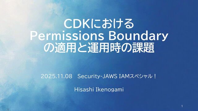 { assumedBy: new iam.ServicePrincipal('lambda.amazonaws.com'), permissionsBoundary: iam.ManagedPolicy.fromManagedPolicyName(this, 'Policy', 'policy-name'), }); { "context": { "@aws-cdk/core:permissionsBoundary": { "name": “policy-name" } } } new App({ context: { [PERMISSIONS_BOUNDARY_CONTEXT_KEY]: { name: ' policy-name', }, }, }); cdk.json Appコンストラクター