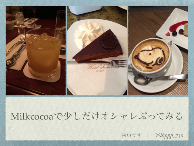 Milkcocoa Girls!で初めてのLTをした時のスライドです。 スマホの向きを変えることで画像エフェクトを変えられるようなものを作ってみました。 Web系の知識はほとんど無い私でも、Milkcocoaは簡単に使えて楽しめたのでオススメです。