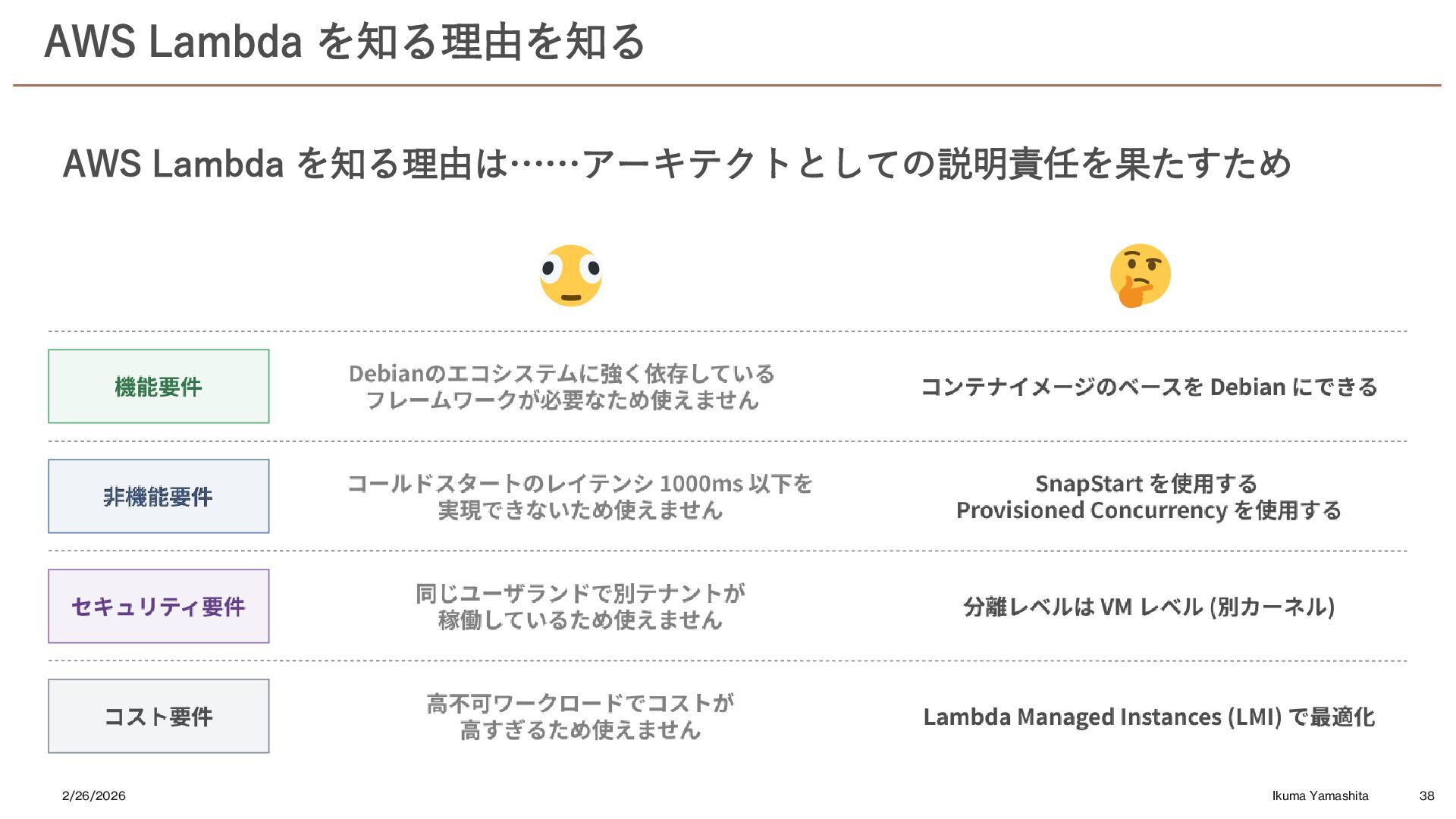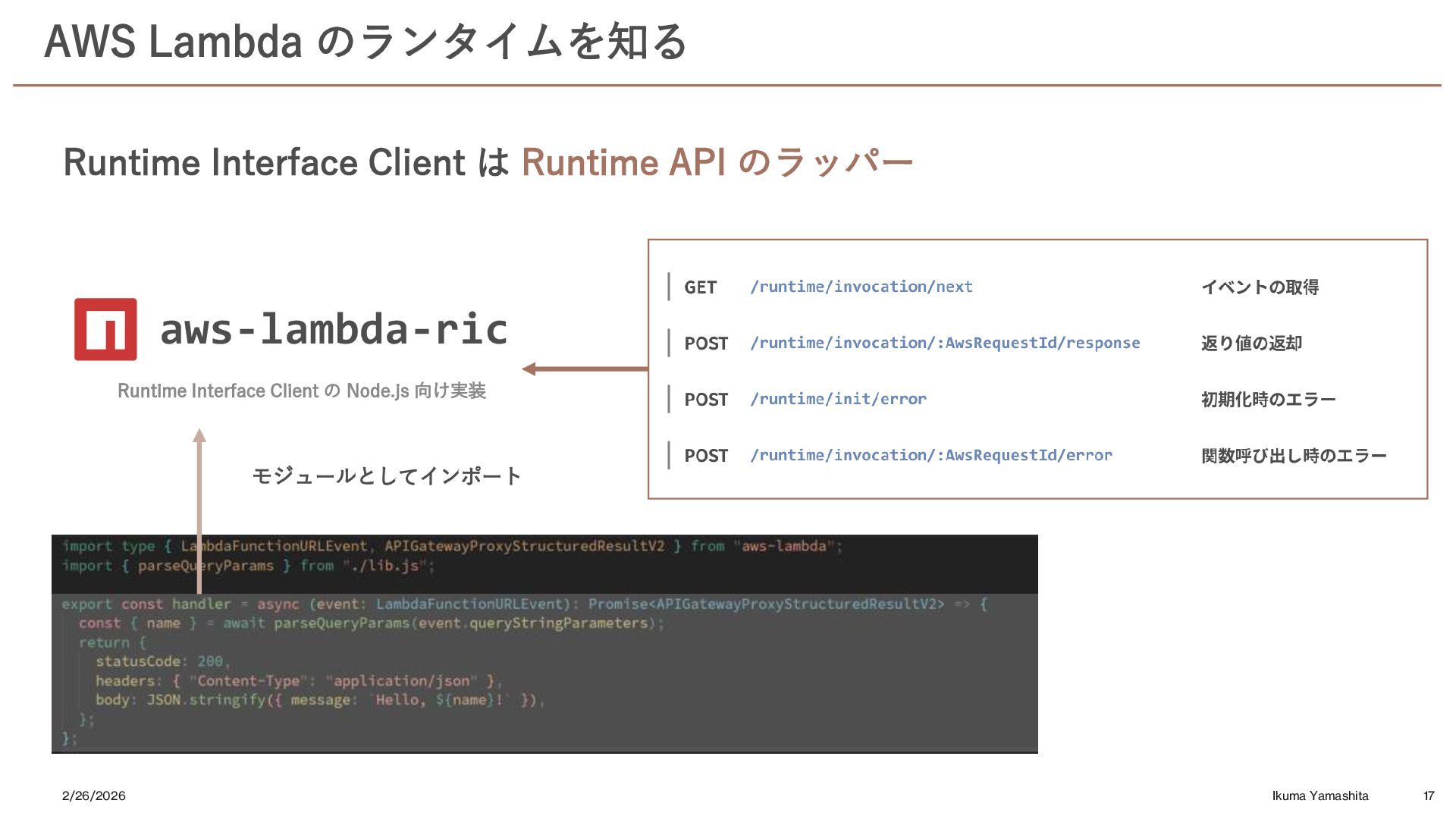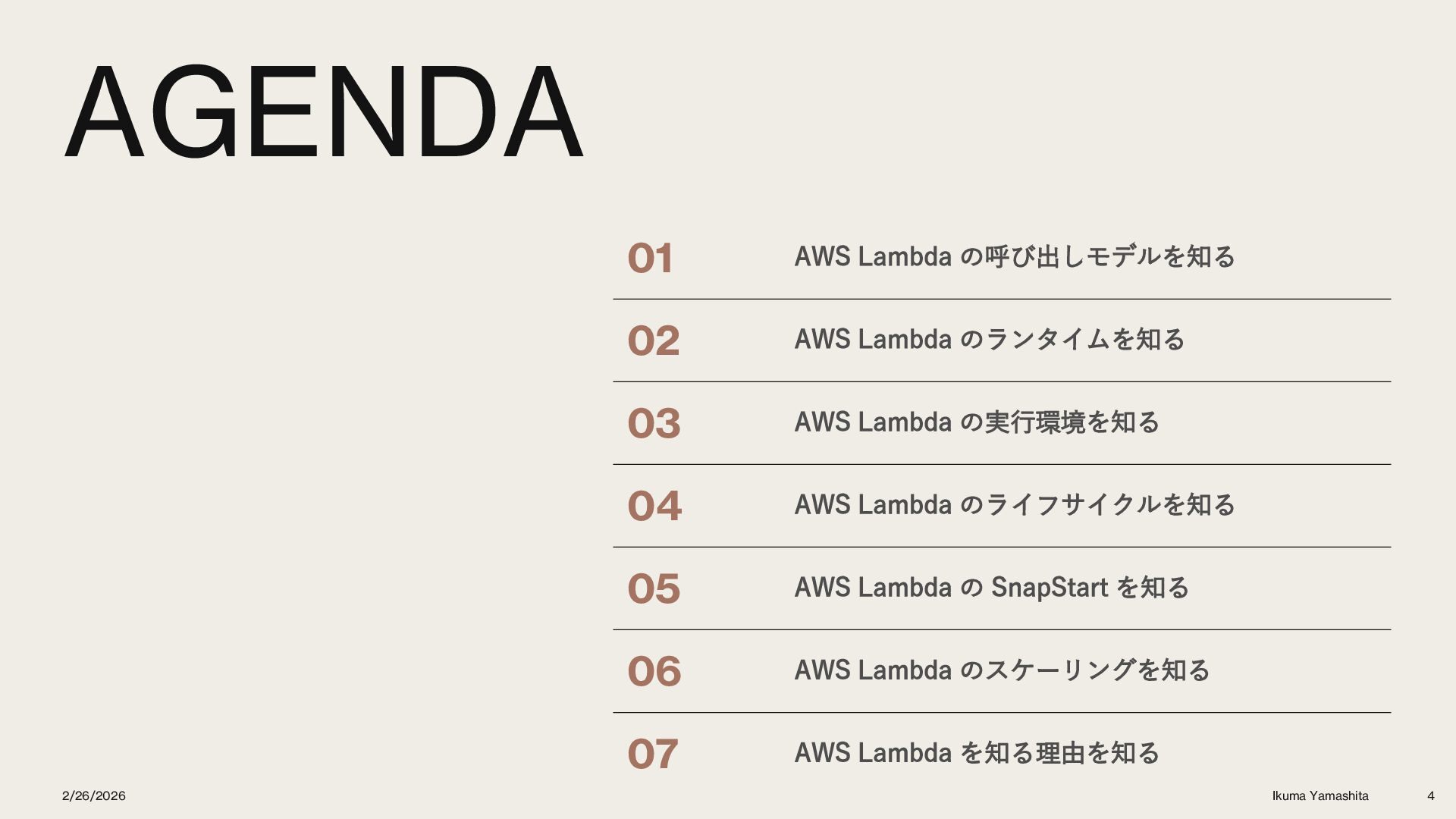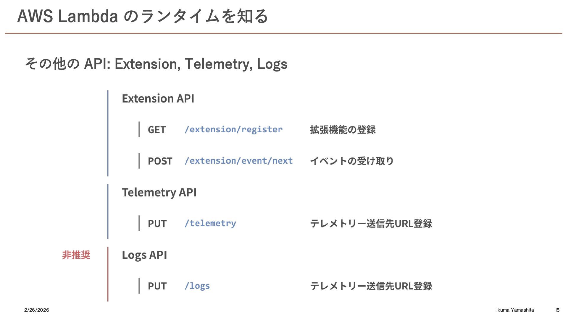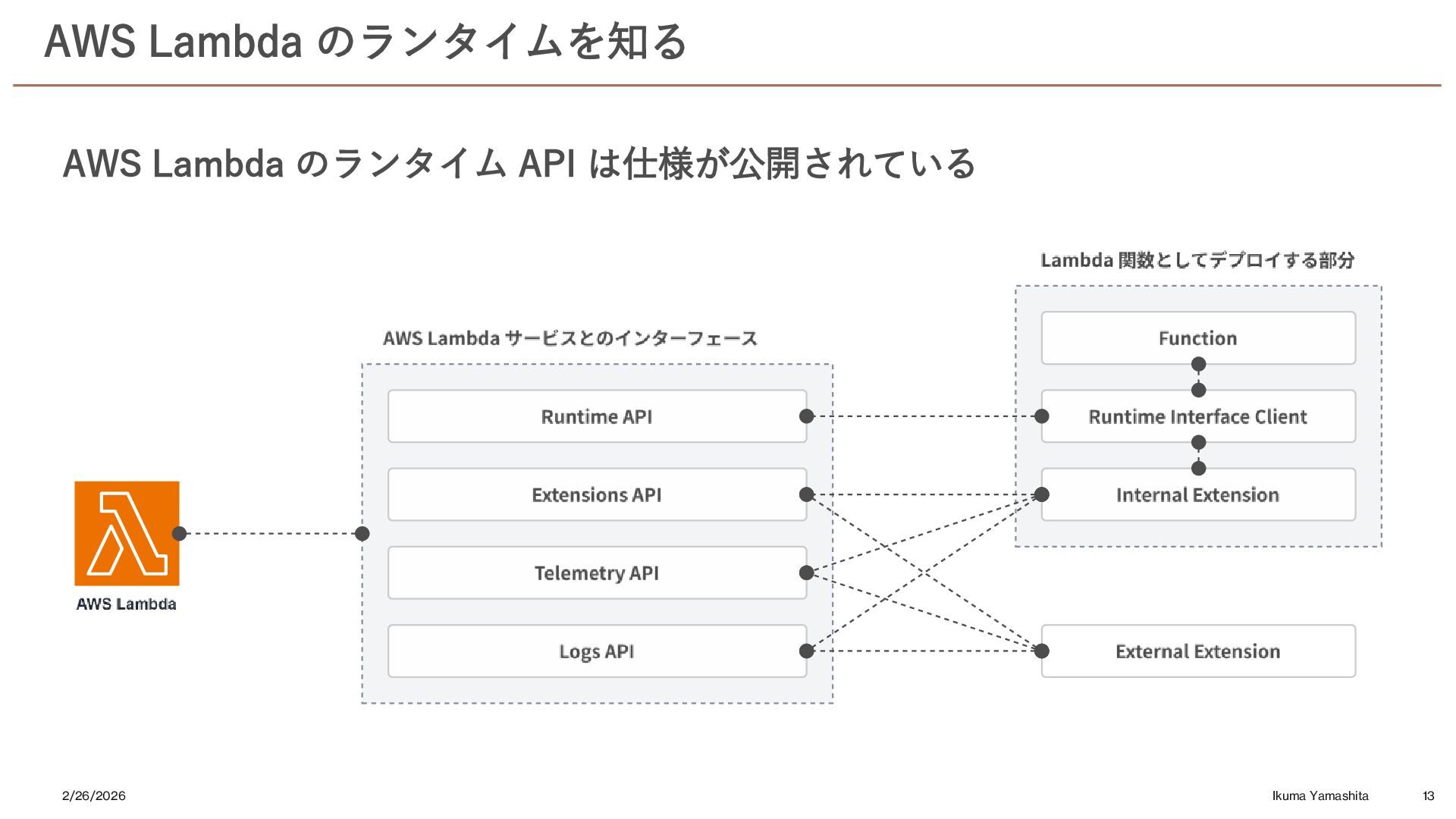 AWS CLI, AWS SDK などから直接 Lambda 関数を呼び出す 2. イベント駆動 Amazon S3, Amazon SNS, Amazon EventBridge などのサービスが呼び出す 3. Event Source Mapping 特定サービスからイベントをバッファリングしてバルク処理を行う 最終的にはすべての呼び出しはすべて AWS サービス API 経由になっていると考えるのが妥当 (IAM の権限モデルがあるため) ただしユーザー目線ではこの3種類に分類すると理解しやすい