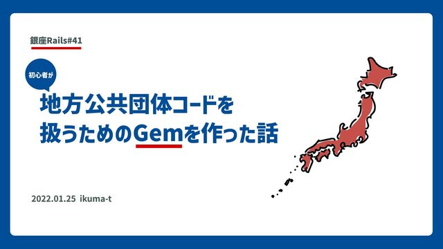 2022.01.25 ikuma-t 地方公共団体コードを 扱うためのGemを作った話 銀座Rails#41 初心者が
