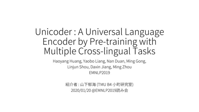 are collected from MultiUN, II TBombay corpus, OpenSubtitles2018, EUbook-shop corpus and Gloval voices Model • 12-layer Transformer with 1024 hidden units and 16 heads Task • Cross-lingual Natural Language Inference (XNLI) • Cross-lingual Question Answering (XQA) Ø They proposed a new dataset XQA. Ø XQA contains three languages including English, French and German. Ø Only English have training data. Experiment settings
