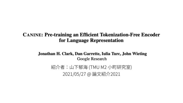 NLP では語彙の圧縮・未知語問題解決のために使われている ü 単語分割では未知語が出る,⽂字分割では計算量の問題がある ü そこで,⽂字以上単語以下のサブワードで分割をしたい ü ただし闇雲にやるのではなく意味のある分割が望ましい Ø (ざっくりいうと) 全単語を⽂字に分割 → 頻度の⾼い 2-gram を結合,を 繰り返して語彙を得る 例: {[q, u, i, c, k, l, y], [a, c, c, u, r, a, t, e, l, y]} → {[q, u, i, c, k, ly], [a, c, c, r, a, t, e, ly]}